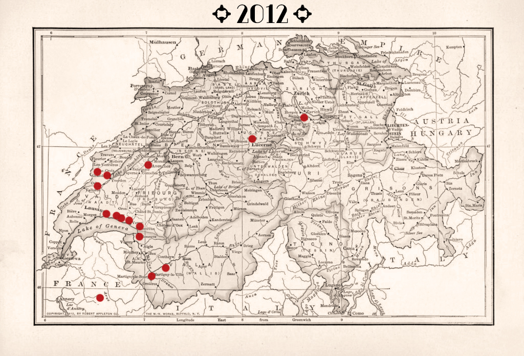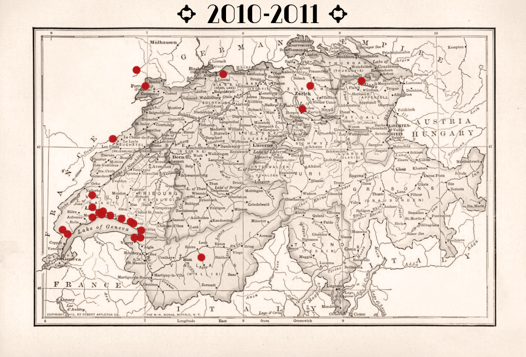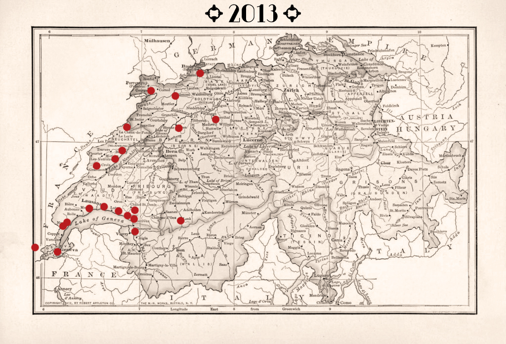 Cipré’Jazz New Orleans à Saillon, Cully Jazz Festival caveau Potterat, Festival des musiques populaires de Moudon, Caf’Conç de Morges, Château de Tannay, At The Ballroom au Battoir de Noville avec Adriano Bassanini, Restaurant du Clos-de-Serrières à Neuchâtel, Château de Chillon.